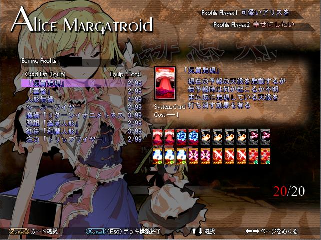 ちょっと病院通いが続いたりなんだりで ろくにROも出来てない状況な上に 気付いたら課金切れであっぷあっぷな…ぎゃー! と言いつつROが出来ない傍らで 緋想天やってたりとかね(ぉ 8月の後半頃から持ちキャラが変わってアリスになりました 最初は優曇華使ってたんだけど巡り巡ってアリスです 今はほぼアリス固定で日々頑張っております それなりに対人で勝てるようにはなってきてるけど… まだまだ安定性に欠けます というか情緒不安定? もう少しテンションを安定させればプレイスタイルもそれに伴って 安定するんじゃないかなーとかなんとか 互いに励ましたりし合える人も出来てきてるので 負けないように頑張りたいわー ROの方は財布に余裕が出来たら課金しよう… 色々と見切りを付けて結論を出すべき事もあるし。 とか仕事場から書いてる時点で色々ダメな気がする 今休憩時間だからセフセフ